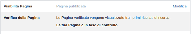 Dopodiché clicca su Verifica della Pagina subito sotto la sezione Visibilità Pagina e successivamente sul link di verifica in blu.